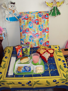 Café da manhã do aniversariante, tudo simples e improvisado, mas cheio de amor... tinha até presente que o papai comprou pra não passar em branco o dia: